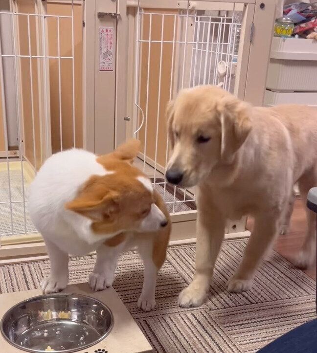 先輩犬のテリトリーに入ってみたら 圧が凄くて引き返した後輩犬