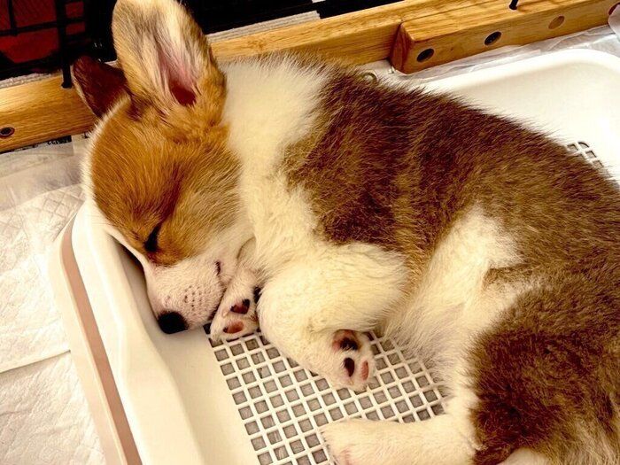 遊び疲れてコテッと寝てしまったコーギー子犬 「“コーギーが落ちてる”とはこのこと!?」な光景が微笑ましい!
