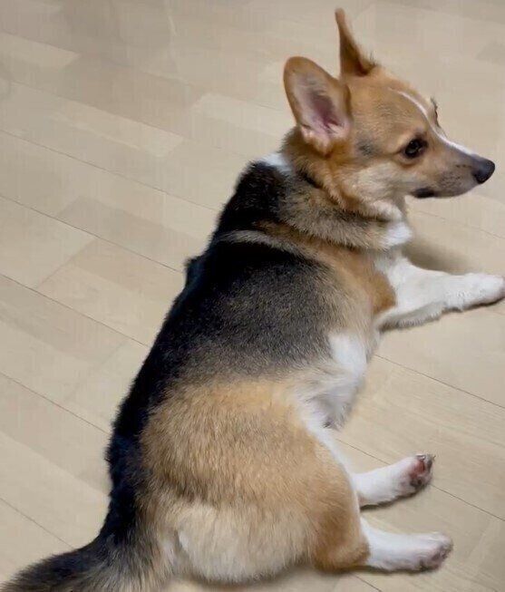 今日はパパが家にいる平日→うれしさが顔に出ちゃうシニアコーギーがかわいい!