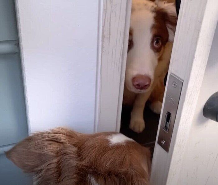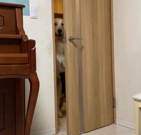ドアの向こう側でノブを押すのは誰? 自らドアを開けて入室する犬に「賢い」の声
