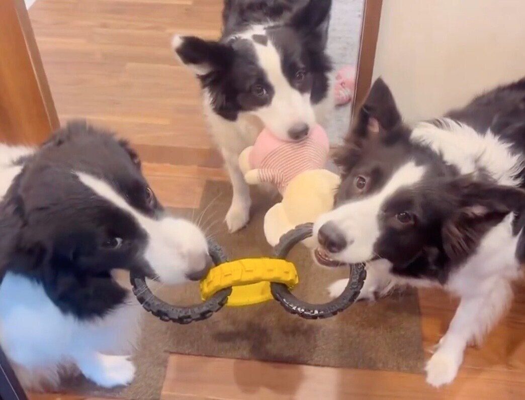 おもちゃをくわえて目の前に現れた“仲良し3兄妹”の犬→「5秒後の展開」に思わず爆笑!