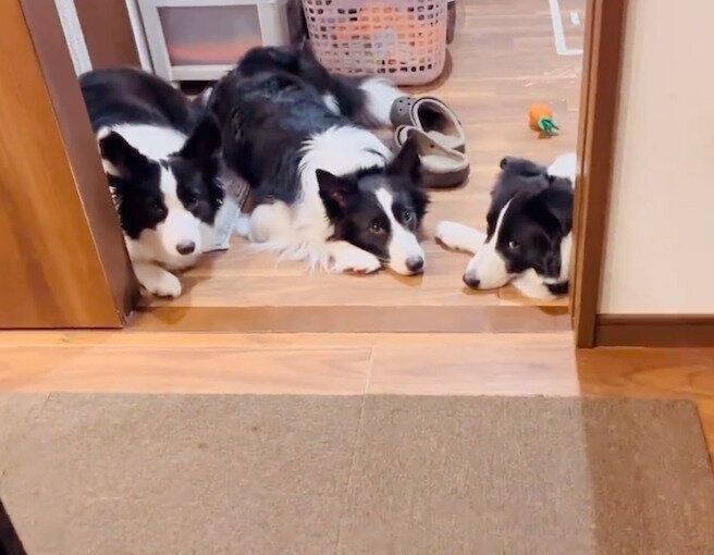 紹介するのは、X(旧Twitter)ユーザー@chiroru_borderさんが「お風呂出待ちのさんにん」と投稿していた、こちらの動画。そこには、飼い主さんがお風呂から出てくるのをドアの前で待っている3頭の愛犬・フラウちゃん(撮影時3才)、ノエルちゃん(撮影時3才)、チロルくん(撮影時3才)の姿が映っています。飼い主さんがお風呂から出てくる瞬間を、今か今かと待っている3頭。健気な待ち姿に、思わずキュンとしてしまうんです。