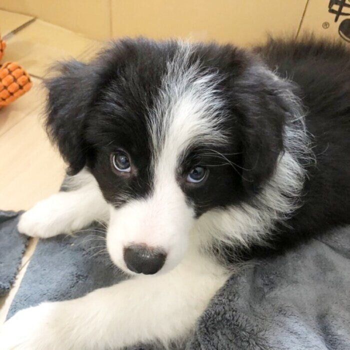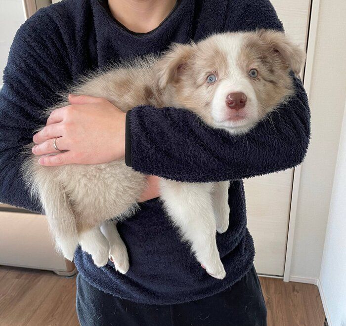 紹介するのは、X(旧Twitter)ユーザー@aichan20231018さんが投稿していた、こちらの一枚。そこには、お迎え初日に撮った愛犬・あいちゃん(撮影時、生後2カ月/ボーダー・コリー)の姿が写っています。新しい環境にやってきて少し緊張している様子にも見える、あいちゃん。お迎え当時のことや現在の様子について、飼い主さんに話を聞きました。