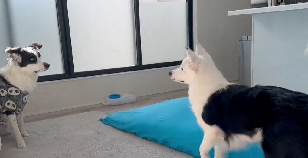 いったい何があったの?「気まずい空気が流れる」ゴールデン・レトリーバーとボーダー・コリーに注目が集まる