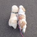 ピタッと寄り添いながら散歩するペキニーズとシー・ズー 可愛い後ろ姿に「幸せいっぱい」「仲良し」とほっこり!