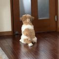 玄関の鍵が開く音を聞きつけてオスワリするシー・ズーの子犬 家族を待つ「健気な後ろ姿」にキュンとする!