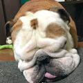 ブルドッグのセナくん♪ セナくんはお散歩の支度をする飼い主さんを見ると、ある行動起こします。みんなが騙されちゃうその行動とは……寝たふり! カクッカクッ……となる姿は本当に眠いように見えちゃうんです。