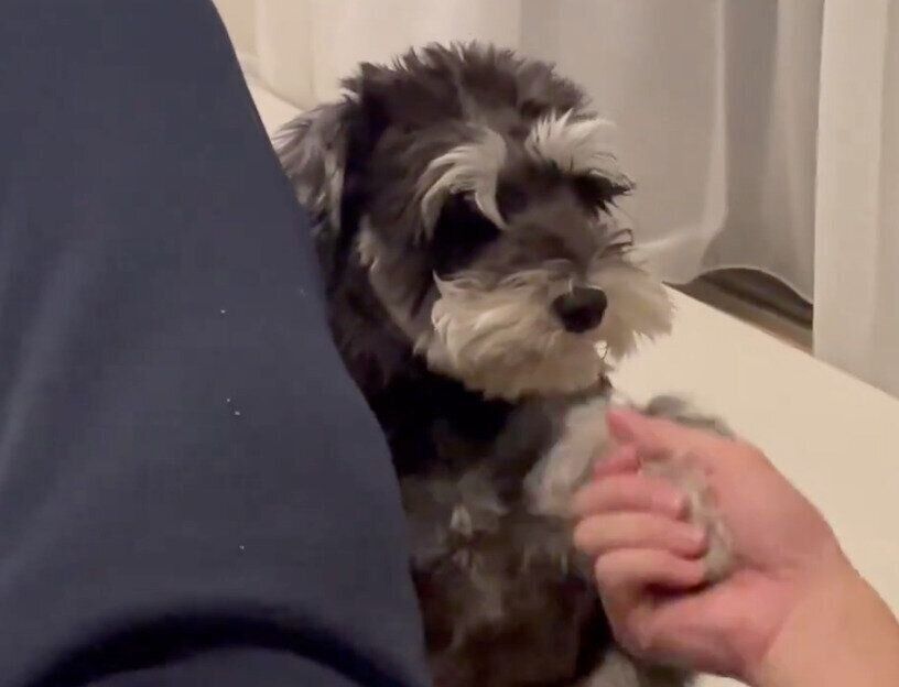 紹介するのは、X(旧Twitter)ユーザー@oli_minischnaさんが投稿していたこちらの動画。そこには、パパさんと握手をしているかのような愛犬・オリちゃん(撮影時1才9カ月/ミニチュア・シュナウザー)の姿が映っています。ずっと握手をしていたというオリちゃんとパパさんの微笑ましいやりとりは、見ているとほんわかとした気持ちになるんです。