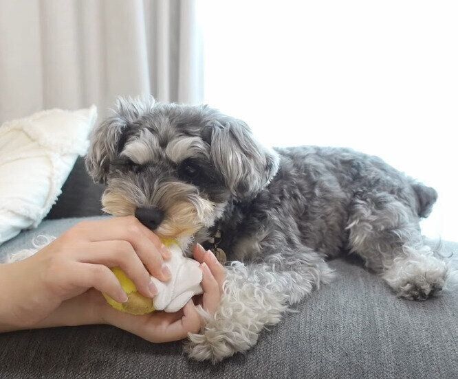 ママがソファでお昼寝しようとすると、ミニチュア・シュナウザーのティノちゃんがすぐ飛び乗ってきました! おもちゃをママに押しつけ、「遊んで遊んで!!」と猛アピール。でも最後は遊び疲れたのか、抱っこされながら一緒に眠るのでした♡ 動画です。