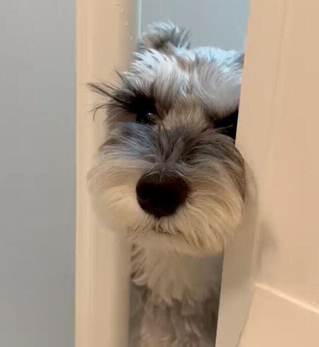 紹介するのは、X(旧Twitter)ユーザー@mini_MOZUさんが「覗かれている…」と投稿していた、こちらの動画。そこには、お風呂場のドアの隙間から顔を出す愛犬・もずくん(撮影時3才/ミニチュア・シュナウザー)の姿が映っています。可愛らしいハマりっぷりを見せているもずくんですが、なぜこんなふうに飼い主さんのことを見ていたのでしょうか。