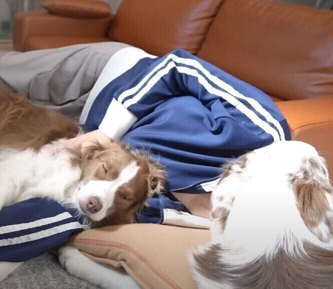 飼い主さんの側から離れない甘えん坊な犬たち お昼寝中も息がしづらいほど寄り添う