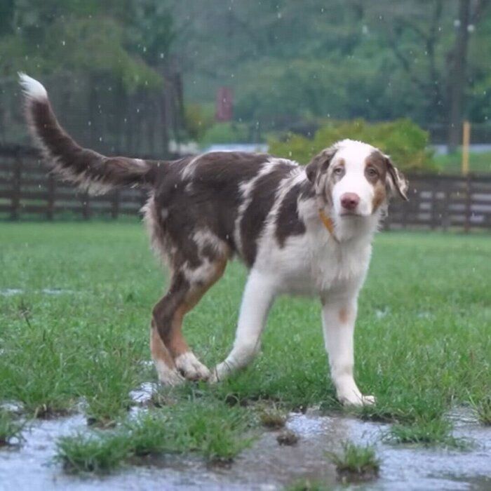 ドッグランでまさかの豪雨! 動じない子犬と雨宿りする先住犬の温度差がスゴイ