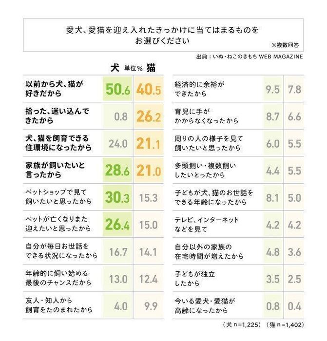 愛犬、愛猫を迎え入れたきっかけは「以前から犬、猫が好きだから」
