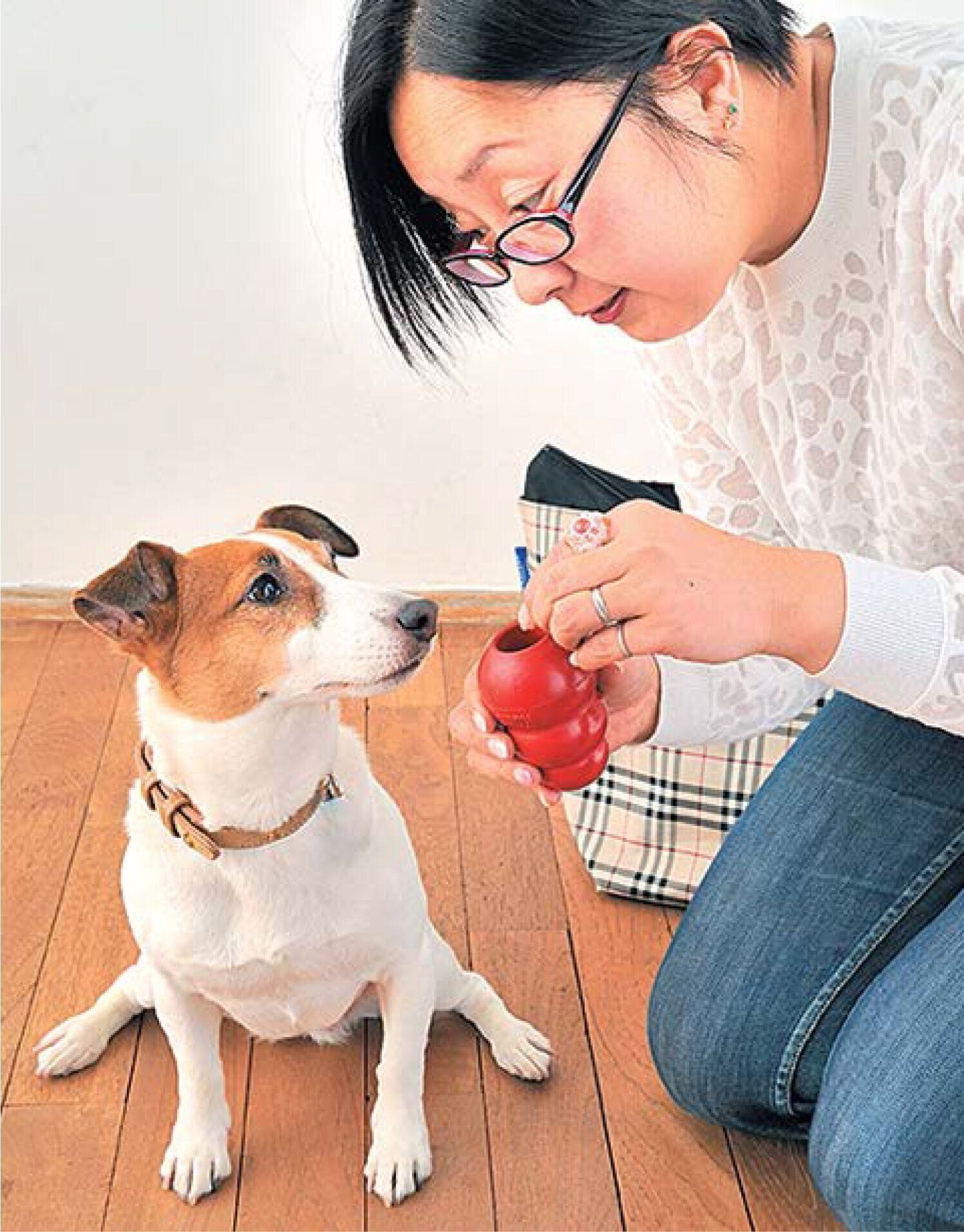 ゴム製知育おもちゃは愛犬が取り出しにくいように入れる