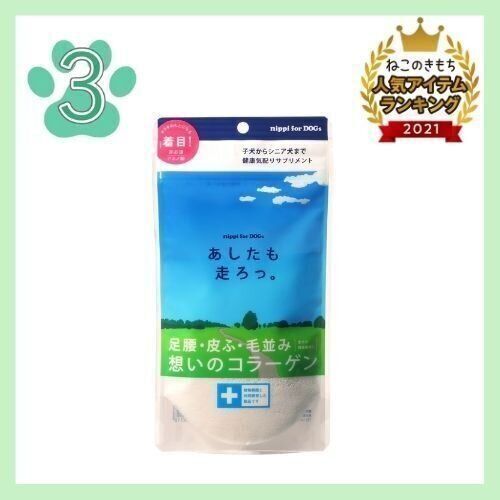 コラーゲンを中心にドッグフードだけでは不足しがちな”非必須アミノ酸”を豊富に配合。低分子コラーゲンにすることで高齢のわんちゃんでも小腸からスムーズに吸収することができ、関節の軟骨細胞や骨の破骨細胞、皮膚の線維芽細胞に作用します。