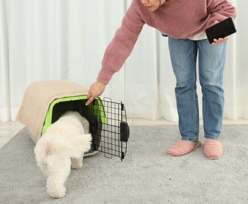 中に入れたら、上から目隠しの布をかけると愛犬を落ち着かせやすくなります。