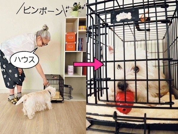 ハウス内ではコングなどを与え、飼い主さんはその間に訪問客の対応をしましょう。