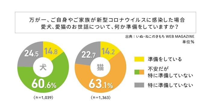 不安を感じる一方で、飼い主さん自身が新型コロナウイルスに感染した場合の「準備をしている」人は約14%、8割以上が「準備していない」という結果に
