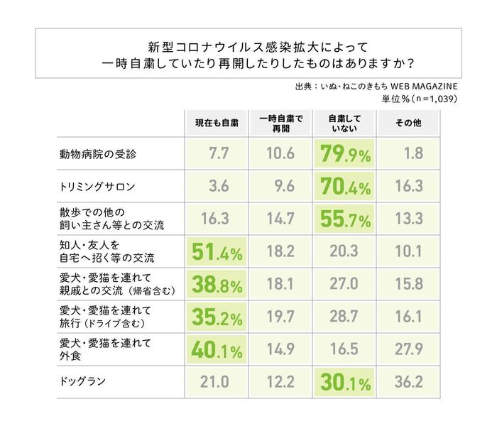 飼い主さん自身のため、愛犬のためにも感染対策に高い意識を持っていることがうかがえます。