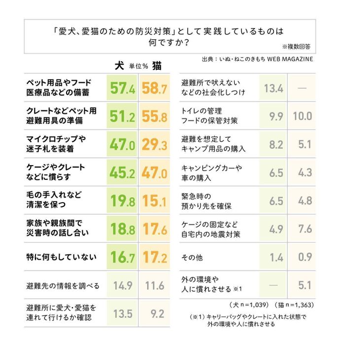 いつどこで起こるかわからないのが自然災害です。自分の身を守るとともに愛犬・愛猫を守るために飼い主さんはどのようなことを考え、行動しているのでしょうか。