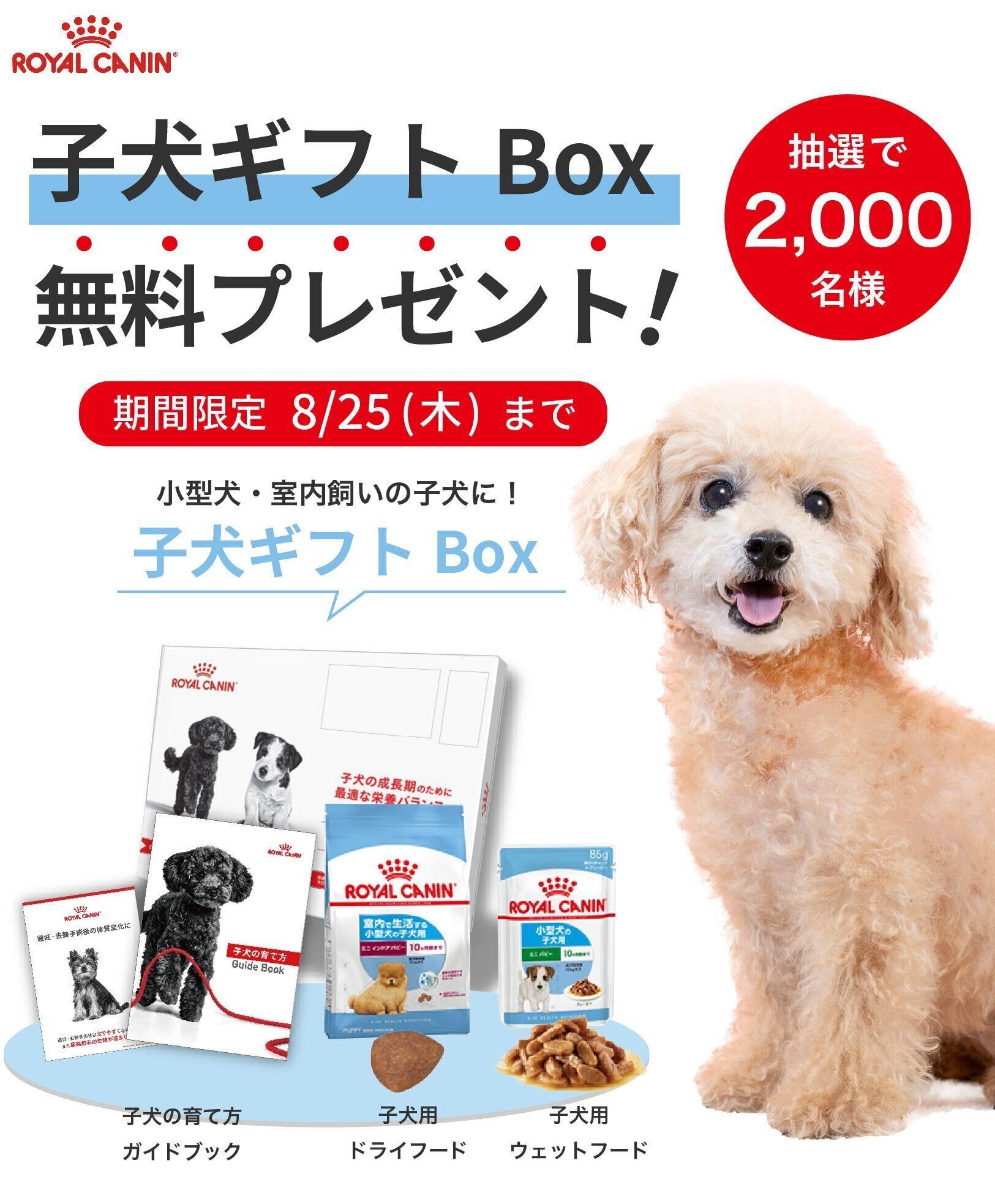 ※当選者の発表は、子犬ギフトBoxの発送をもって代えさせていただきます。お電話・メールでの当選結果に関するお問い合わせは承りかねますので、あらかじめご了承ください。