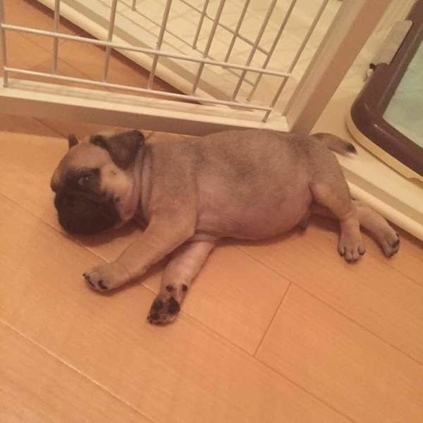 愛犬を横から見たときに、お腹の垂れ下がりがないかどうかを見ます。肥満になるとだんだんお腹が垂れ下がってきます。腹部がつり上がっているのが理想的です。