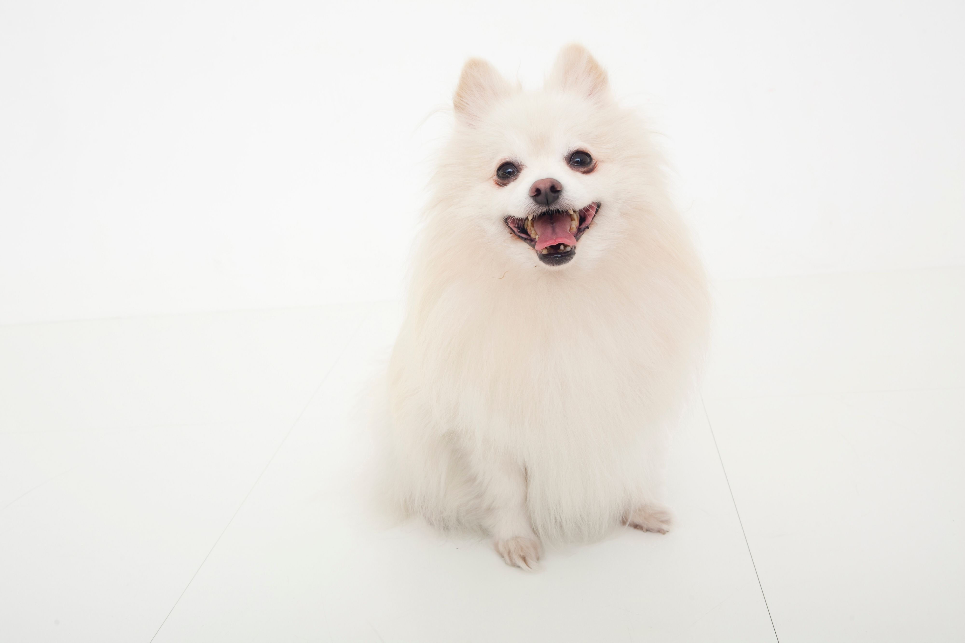 ホワイトも昔から日本で愛されている定番の毛色。祖先であるスピッツの毛色が白いことを考えると、この色がポメラニアンに似合うのにも納得がいきますね。