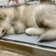 「1時間ほど待合室で待っていたのですが、暑かったこともあり、アルは待っている間に疲れてしまったようです。やっと診察室に呼ばれて診察台に乗ると、診察台がひんやり冷たかったのかそのままフセて寝始めてしまいました」