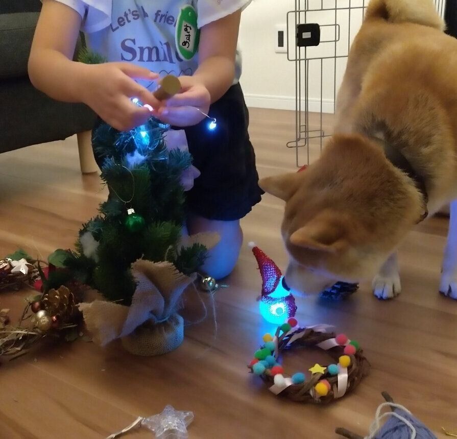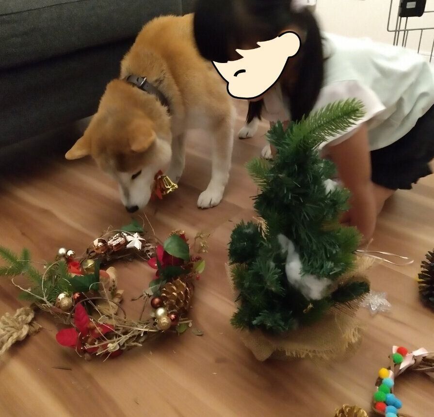11月中旬クリスマスムードに周りがなり始める頃、私はすっかりクリスマス気分になっていたので去年のクリスマスツリーやリースを出し、娘とタロさんに「クリスマスの飾りつけやるよー!」と声をかけました。