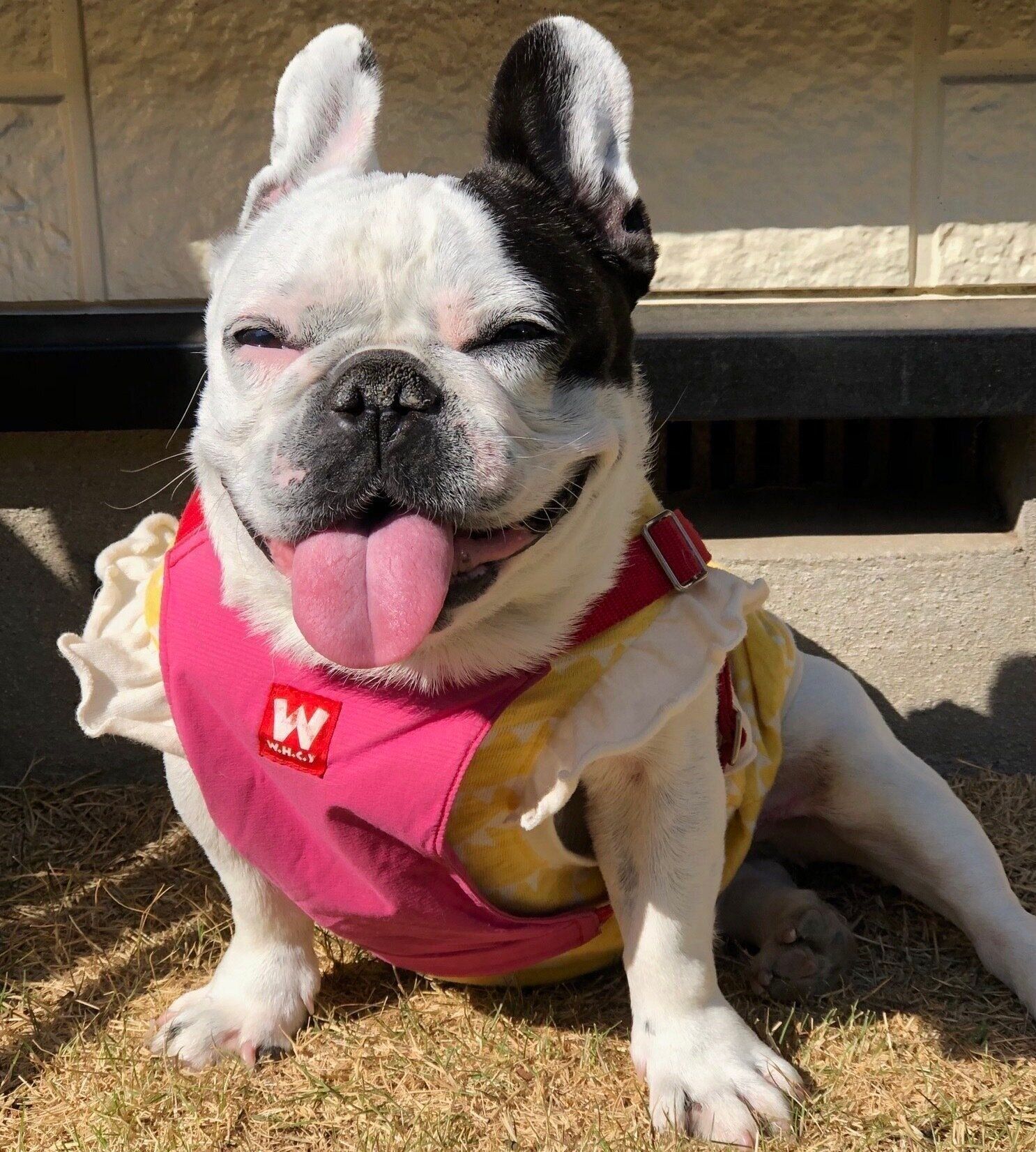 ファッションイラストレーターの進藤やす子さんと、元保護犬の愛犬ふうちゃん(メス・9才/フレンチ・ブルドッグ)