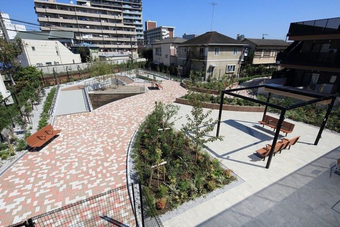 それから対象の各居室にプライベートテラスがあるのですが、例えば愛犬がテラスに出ているときに他のワンちゃんと目線が合うと吠え合ってしまう可能性もあります。それを避けるため、テラスの壁を目線が合わないような高さとしています。