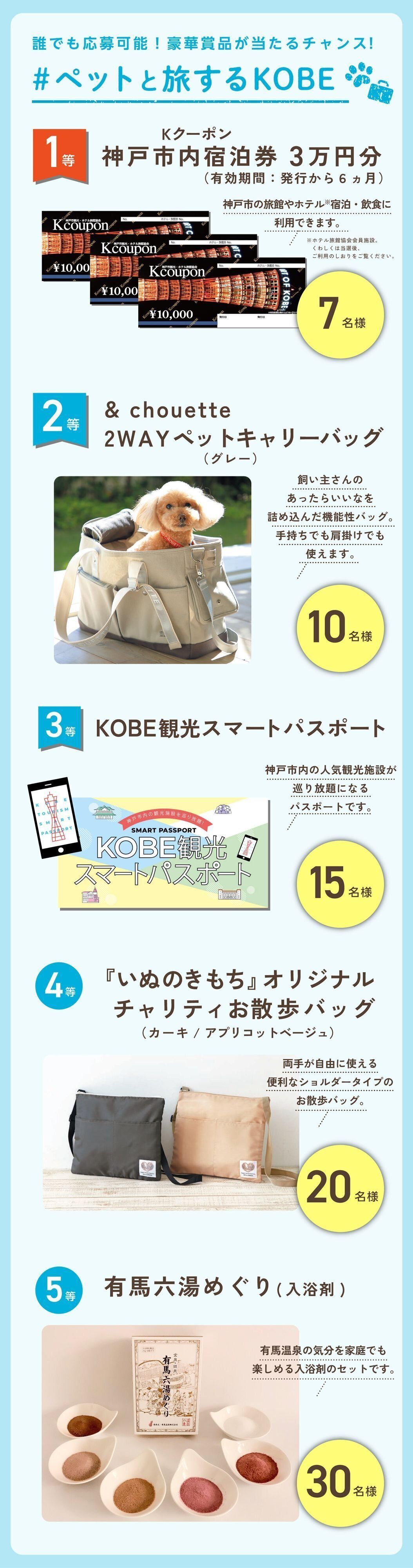 愛犬と一緒に神戸の観光スポットを訪れ、写真をInstagramに投稿すると、宿泊券や限定グッズなど豪華賞品が当たるチャンス!