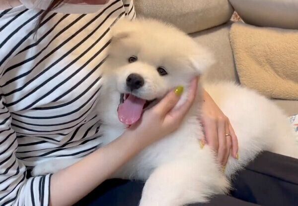 家に迎えた初日に笑顔を見せてくれたサモエド子犬 よく聞く「サモエドスマイル」とはなに?|獣医師解説