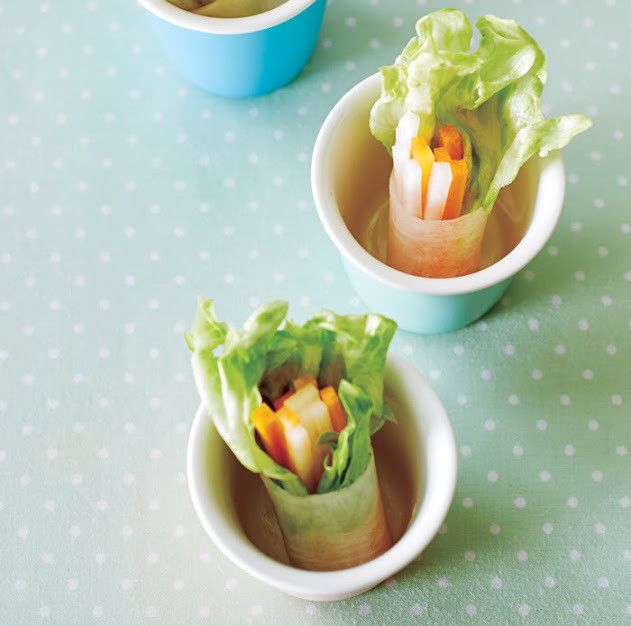 3:2でカットしたものとレタスを、スライスしただいこんにのせて巻いたら完成。