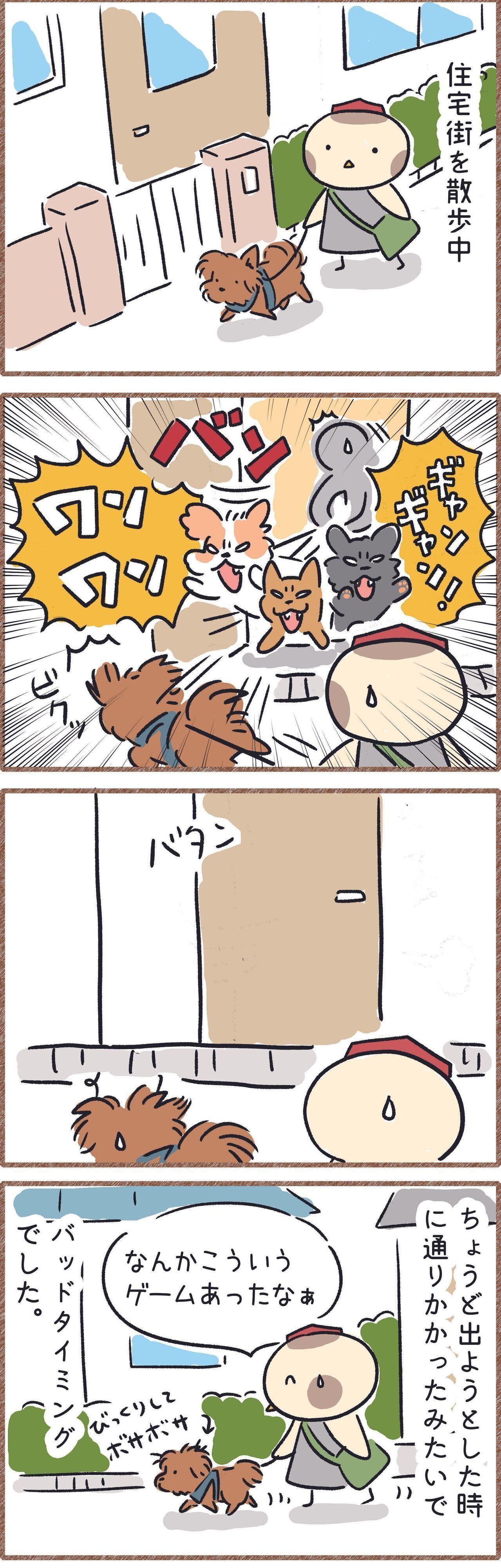 犬は自分のテリトリーに敏感!? びっくりした鉢合わせ|連載「こぐま犬てんすけ」vol.200