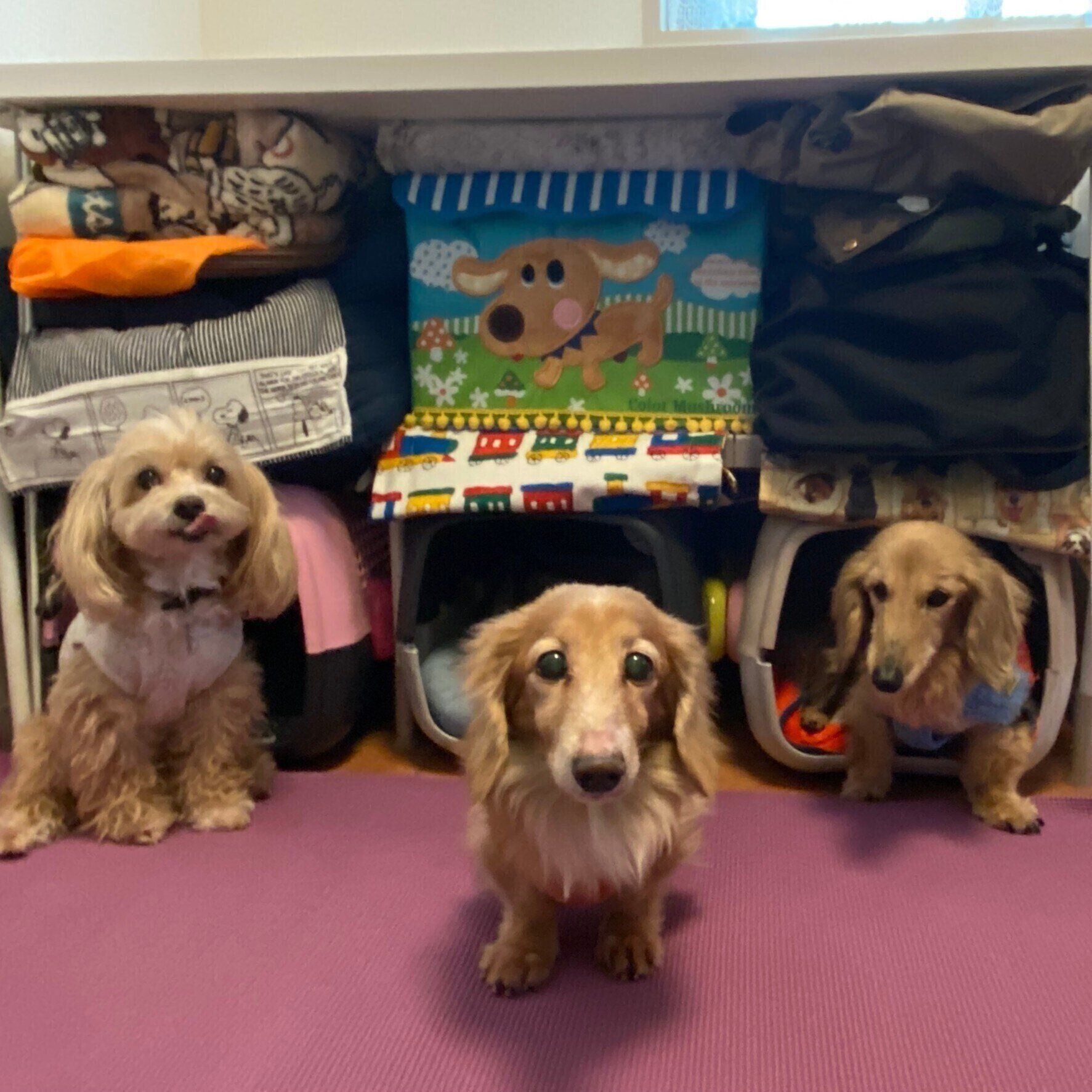 「避難所に犬を持ち運ぶだけではなく、家の中で被災したときのシェルターにもなるクレートは頑丈さを優先。さらに、棚とクレートの間にトイレシーツなどを詰めて、揺れや衝撃で動いてしまわないように工夫しています」