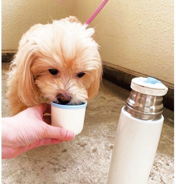 「散歩時の水は、犬用の飲み水や〝マナー水〞としてだけではなく、人の水分補給になるものを携帯して。犬も水を飲みやすい、コップつきの水筒が重宝しています」