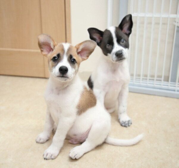 取材当日、院内で保護されていた元野犬のススンくん(右)とスススンくん(左)。ユニークな名前はスタッフみんなで考えるそう。すでに多数の応募が来ていました。保護犬たちが到着した直後は専用の隔離部屋に収容し、感染対策も万全に行います