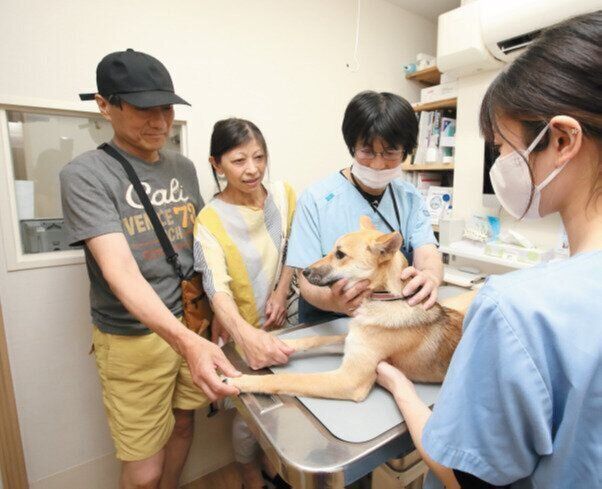 取材当日には、大師前から元野犬の〝はなごんトッチー〞くんを迎えたNさん夫妻が来院。Nさんは、夫婦で初めて迎える犬は保護犬と決めていて、大師前が発信しているSNSを見て応募しました