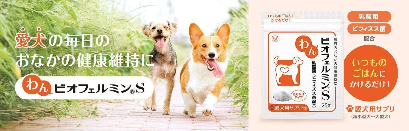 以前から腸内フローラ(※1)に着目し研究を重ねてきた「ビオフェルミン」から、待望の愛犬のためのサプリメント「わんビオフェルミンS」が登場しました。