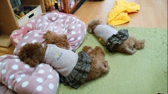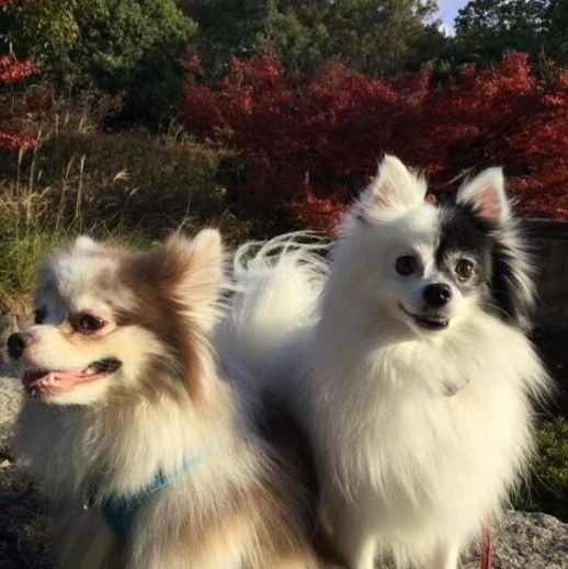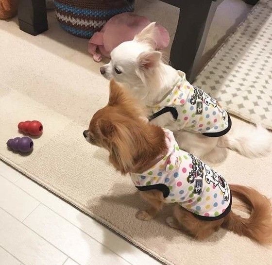 「くっついて寝ていたり、お耳やお口をぺろぺろしあったりしているのを見ると、とても幸せな気持ちになります。おやつのときにもオスワリをしながら並んで食べていて可愛いです」