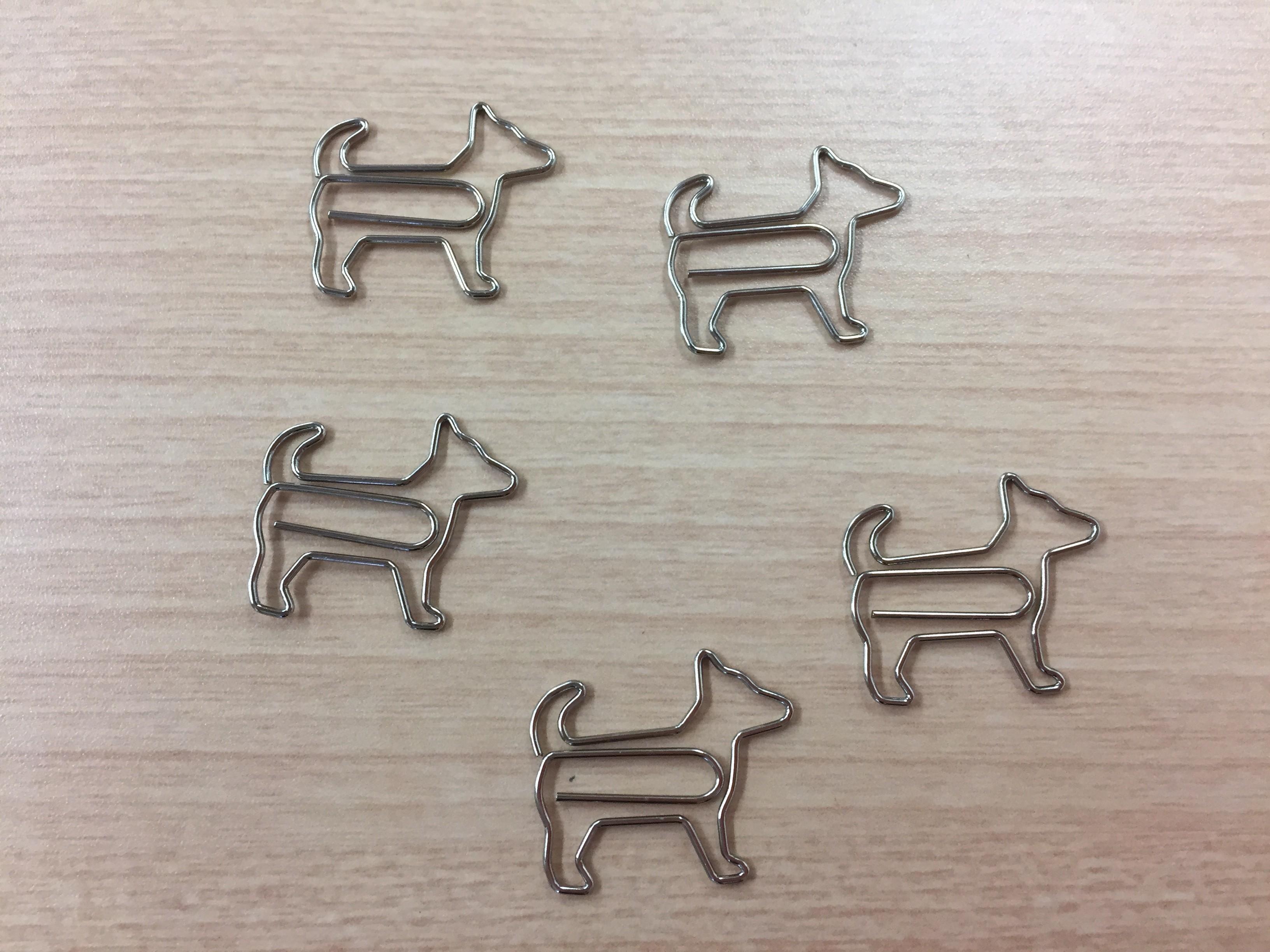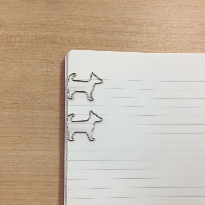 犬のかたちをしたクリップです。いかがでしょうか?ただ並べているだけなのに、もう犬の可愛さがあふれてきますね♥ノートなどにこちらのクリップを挟んでみるとどうなるでしょうか……