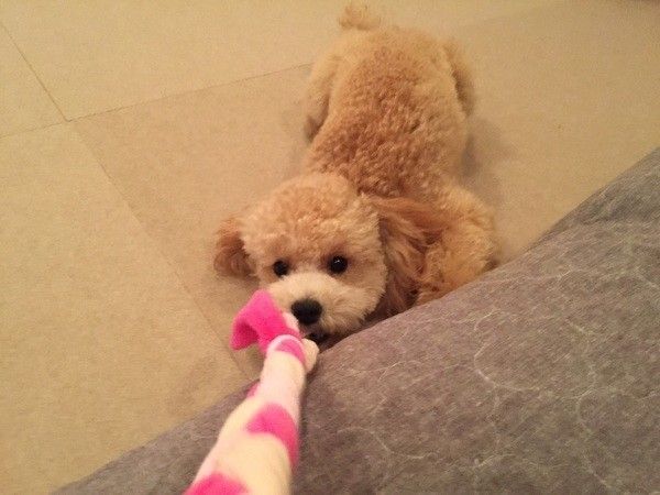2. ロープおもちゃを獲物に見立て、床に這わせるようにして動かしましょう。すると愛犬は捕まえようとしてきます。ロープの動きに変化を付けると、より本物っぽく見え、狩猟本能をくすぐりますよ。