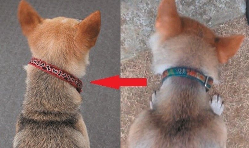 写真右が発症時。首回りの毛が抜け落ちて、元気もなくなっていたそう。写真左が治療後。(症例写真提供/Can Do!Pet Dog School西川文二先生)