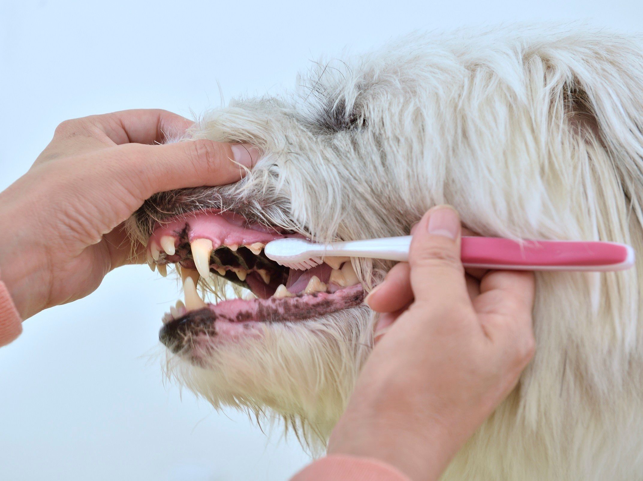 動物病院で麻酔をかけて歯石を除去したあとは、自宅で飼い主さんが歯みがきを。日々お手入れすることで歯垢の付着を防ぎ、歯周病予防につなげましょう。