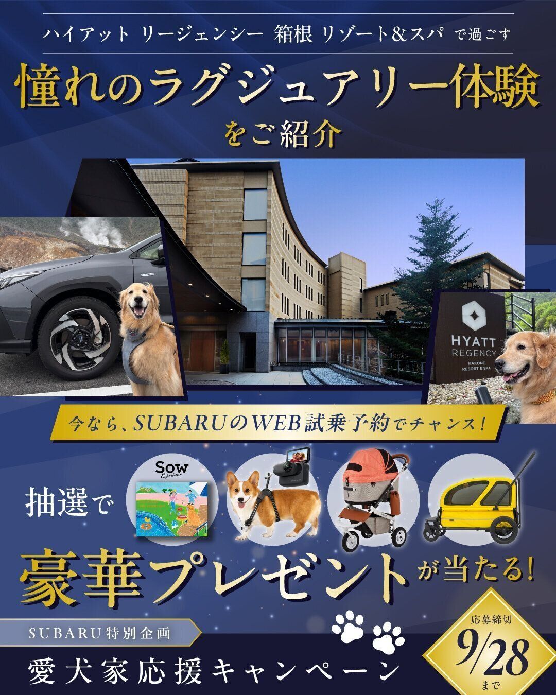 今回は、SUBARUの「宿泊プラン付きモニター試乗キャンペーン(※)」に参加されたご夫婦と愛犬ポルカちゃん(ゴールデン・レトリーバー)の箱根旅をご紹介します。