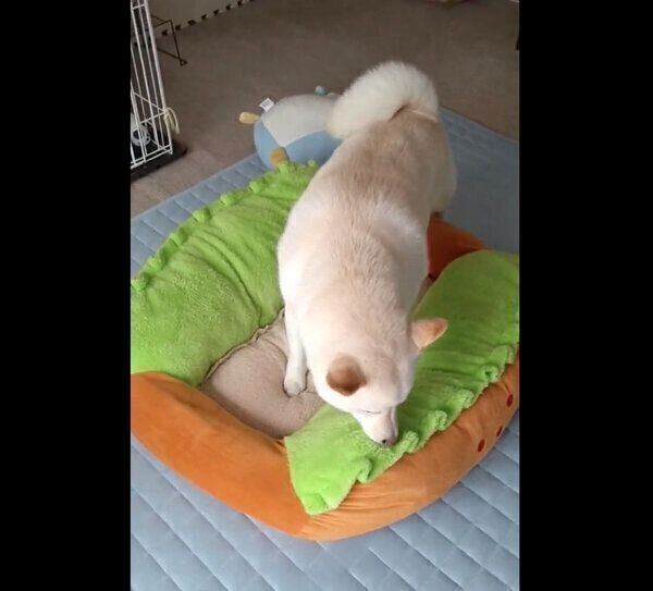 戸惑いながら「洗いたてのベッド」のニオイを嗅ぎ、最終的にベッドの上に座った犬 行動からわかる心理は?