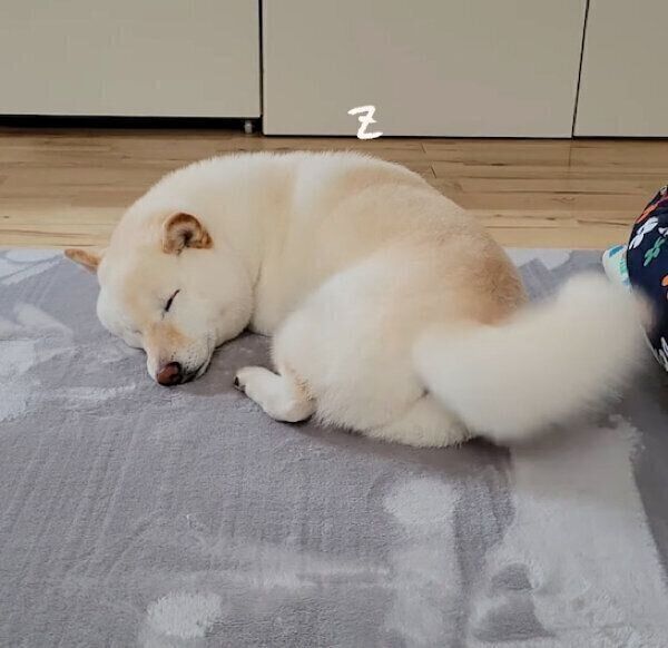 白い動くもののほうに目を向けると、お昼寝中の愛犬・こまちちゃん(撮影時6才/柴犬)が楽しそうにしっぽをフリフリと振っていたのだそうです。