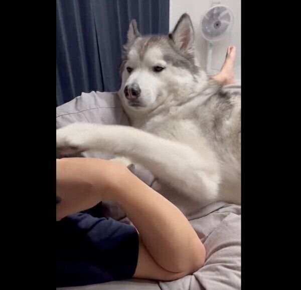飼い主さんにナデナデしてもらって気持ちよさそうな表情を見せる煉くんですが、飼い主さんがナデナデをやめると、思わず笑ってしまうような態度をとったようです。