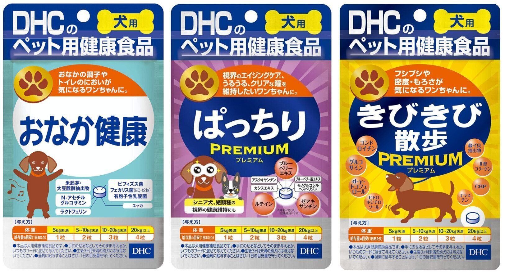 記事末のアンケートに回答いただいた方の中から、抽選で10名様に、DHCで人気のサプリメント「犬用おなか健康」「犬用ぱっちりプレミアム」「犬用きびきび散歩プレミアム」の3点お試しセットをプレゼントいたします。